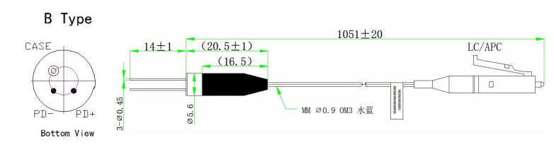 InGaAs Pigtailed Photodiodes కపుల్డ్ మల్టీమోడ్ ఫైబర్, కోర్ వ్యాసం 50µm లేదా 62.5µm ఎంచుకోవచ్చు మరియు గుర్తించదగిన తరంగదైర్ఘ్యం 900-1700nm.