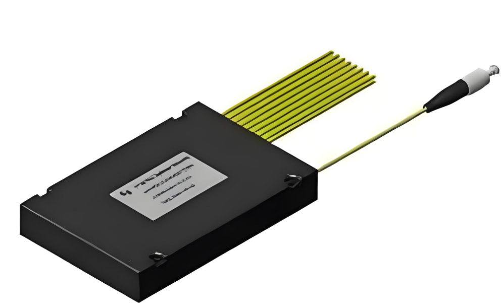 PLC ప్లేన్ వేవ్ PLC (ప్లానార్ లైట్వేవ్ సర్క్యూట్) ఆప్టికల్ స్ప్లిటర్లు క్వార్ట్జ్ సబ్స్ట్రేట్లపై ఆధారపడిన ఇంటిగ్రేటెడ్ వేవ్గైడ్ ఆప్టికల్ పవర్ డిస్ట్రిబ్యూషన్ పరికరాలు, సెమీకండక్టర్ ప్రక్రియలను (ఫోటోలిథోగ్రఫీ, ఎచింగ్, డెవలప్మెంట్, మొదలైనవి) ఉపయోగించి రూపొందించబడ్డాయి. PLC స్ప్లిటర్లు ఒకే ఆప్టికల్ ఫైబర్ నుండి ఆప్టికల్ సిగ్నల్లను బహుళ ఆప్టికల్ ఫైబర్లుగా విభజించి, ఆప్టికల్ శక్తి యొక్క ఏకరీతి పంపిణీని సాధిస్తాయి. ఆప్టికల్ వేవ్గైడ్ శ్రేణి చిప్ యొక్క ఎగువ ఉపరితలంపై ఉంది, చిప్లో విభజన ఫంక్షన్ను ఏకీకృతం చేస్తుంది; తర్వాత, బహుళ-ఛానల్ ఫైబర్ శ్రేణులు చిప్ యొక్క రెండు చివర్లలోని ఇన్పుట్ మరియు అవుట్పుట్ చివరలకు జతచేయబడతాయి మరియు ఎన్క్యాప్సులేట్ చేయబడతాయి.